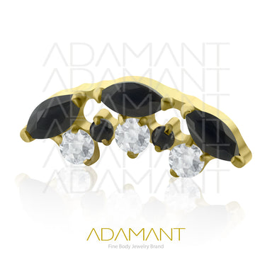 18g-16g, Internally Threaded, Accessory, Plated Gold Titanium, 0.9mm threading, Especial Cluster, Prong set, Cubic Zirconia.