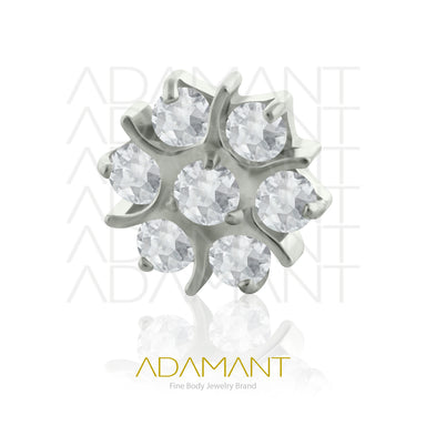 18g-16g, Internally Threaded, Accessory,Titanium, 0.9mm threading, Especial Cluster, Prong set, Cubic Zirconia.