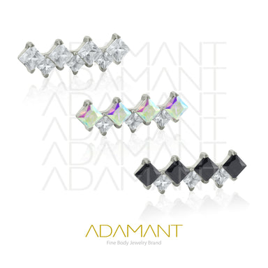 18g-16g Titanium Baguette Trinity 0.9mm threading pattern, Prong set, Cubic zirconia.